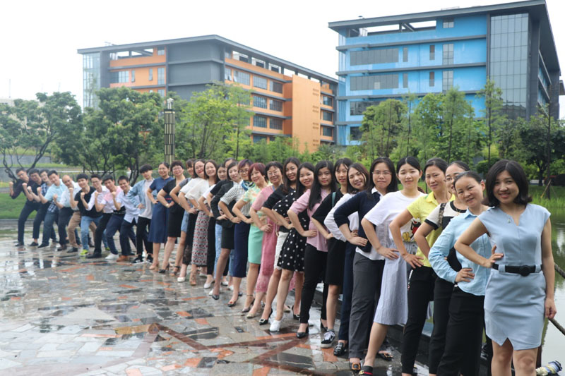 (中间为集团周总,周总与学员们展示风采,为园区增添一道靓丽的风景线)